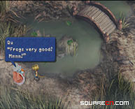 | 提示: 1.有Quina在队伍里时去沼泽里可以抓青蛙,抓到一定数量会获得各种物品和装备(大部分Quina的装备都可以抓青蛙获得),要记得不时去沼泽里看看。不过不要抓光了,记得留一雌一雄让他繁殖,还有金色青蛙也不要捕捉。 辨认方法:看青蛙身上的黑线,雄的比较明显,雌的则基本看不见。 2.Quina的青魔法技能是靠吞食怪物获得的,战斗中把怪物打至少于1/4的血后使用Eat能力既可。这里可以吃到的魔法有:Aqua Breath(アクアブレス),Frog Drop(カエルおとし),Mighty Guard(マイティーガード),Vanish(バニシュ),Pumpkin Head(パンプキンヘッド),Limit Glove(リミットグローヴ),Angel's Snack(天使のおやつ)(吃此魔法的怪对当前一般等级还是比较强悍的,小心应付),Mustard Bomb(マスタードボム)(需要回Lindblum(リンドブルム)从商业区下面出去后在森林里吃Bomb(ボム),如果愿意回来这里也能顺便吃到Lv3 Def-Less(レベル3デフレス))。 更具体的东西请查阅专题《青魔法》。 |
