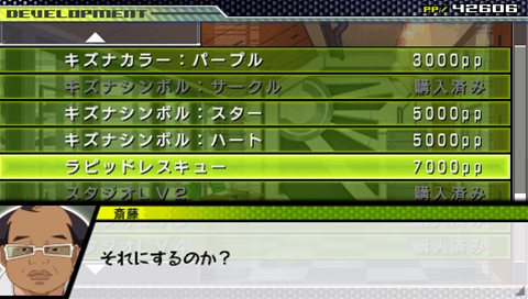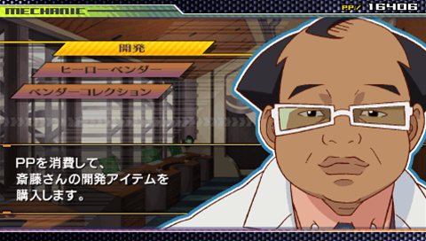 使用解决事件後得到的PP(私人点数),可以跟在机器整备房内的斋藤先生购入各式各样的道具。同时也搭载可以玩英雄贩卖机(转蛋)的收藏机能。