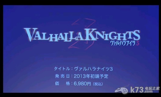 于PSP平台上MMV发行的备受玩家好评的瓦尔哈拉骑士续作《瓦尔哈拉骑士3》在今天的索尼直播会上公布了其存在,本作的发售平台为PSV,游戏将会于013年初发售,售价为6980日元。