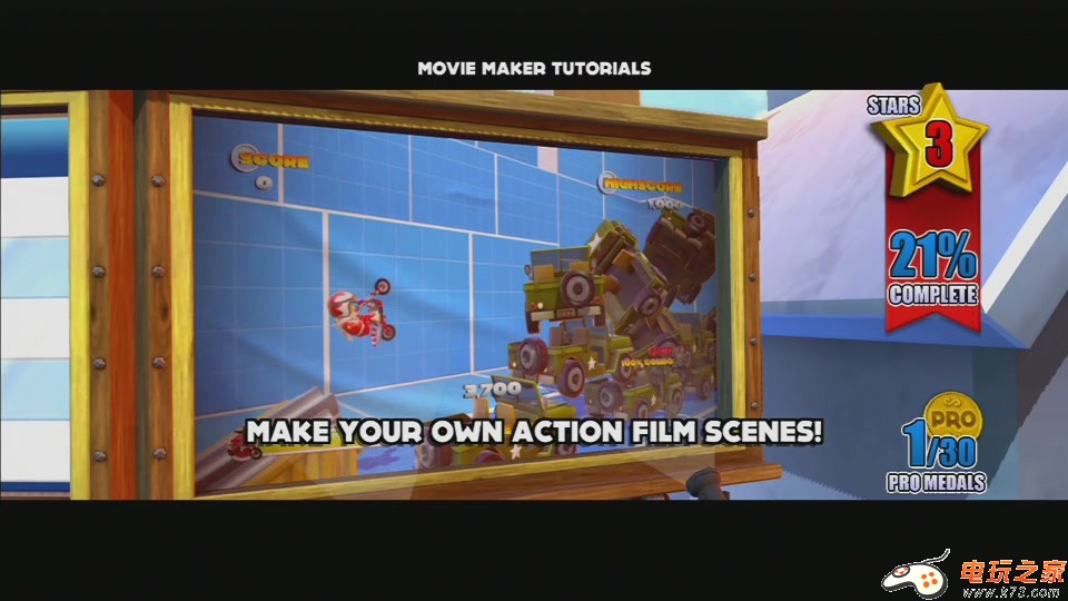 这次游戏的主题是跟电影结合在一起,所以在当你完成每一大关後,游戏就会很贴心的把你刚刚在游戏的帅样(或是跌的狗吃屎的蠢样)剪辑成小电影,你的年度大片就这样在XBOX上映啦!