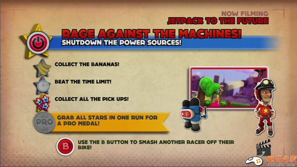 游戏的推进是靠着在每一个关卡中完成指定的任务,然後获取星星来开启下一个关卡。游戏也设有相当多极具挑战性且多样化任务内容,过关很容易,但是要拿下所有任务,就不是这麽简单的一件事。这也增添了游戏的耐玩度,你可依照自己的能力去选择通关的方式,然後接着挑战完美过关。出道当明星很简单,但要成为一位动作巨星,可就要看自己的造化罗!