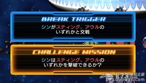 Break1:挑战任务为把杂兵清了自后,小孩子见大叔(好吧,两个我都忘记了名字了,一个是海盗的主角,一个好似F91的主角)。慢慢来吧,这个急不了的。、