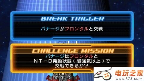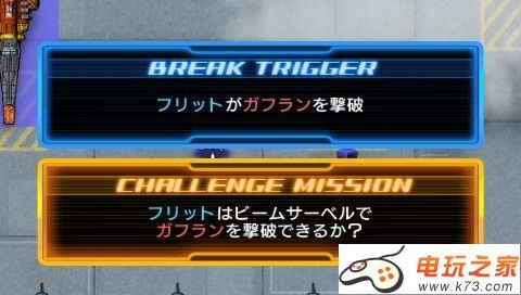 达成Break条件后阿斯兰驾驶圣盾和3只金恩出现在屏幕下方,基神驾驶剑装强袭(剧情不是裸强么!!)和大天使号作为友军出现在屏幕上方,Challenge达成后马修马(玫瑰男)和2只加萨C出现在屏幕下方