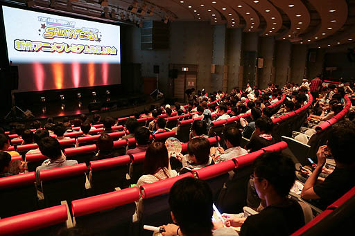 本次的上映会分成白天跟晚上两部份,而这两部并不是都只有播放动画而已,还包含了脱口秀和礼物抽选会等,让活动更加热闹的内容。而在会场的未来研究所剧场,包含白天和晚上的部份一共聚集了 200 组共 400 名幸运观众。剧场几乎可以说是座无虚席,连女性的观众也相当的多。