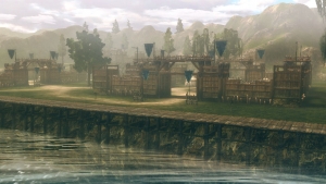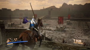 新场地襄阳:场地中央有城塞耸立着,而据点就像是要包围住一样四处都有。因为可在城墙上移动,从南边高台往下看的话可以看到接着雨的池子。看来这是一个非常适合水计的场地水计