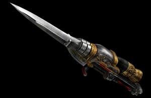 击剑:剑柄下连接着细长绳子的直剑,绳子前端接着弧型短刀。一般攻击会进行像是中国剑演舞般的连续攻击。集气攻击的话,连接着细绳的短刀就会像是绳镖一样的方式进行攻击,当短刀打到对方时,就好像是勾住对方一样可移动过去