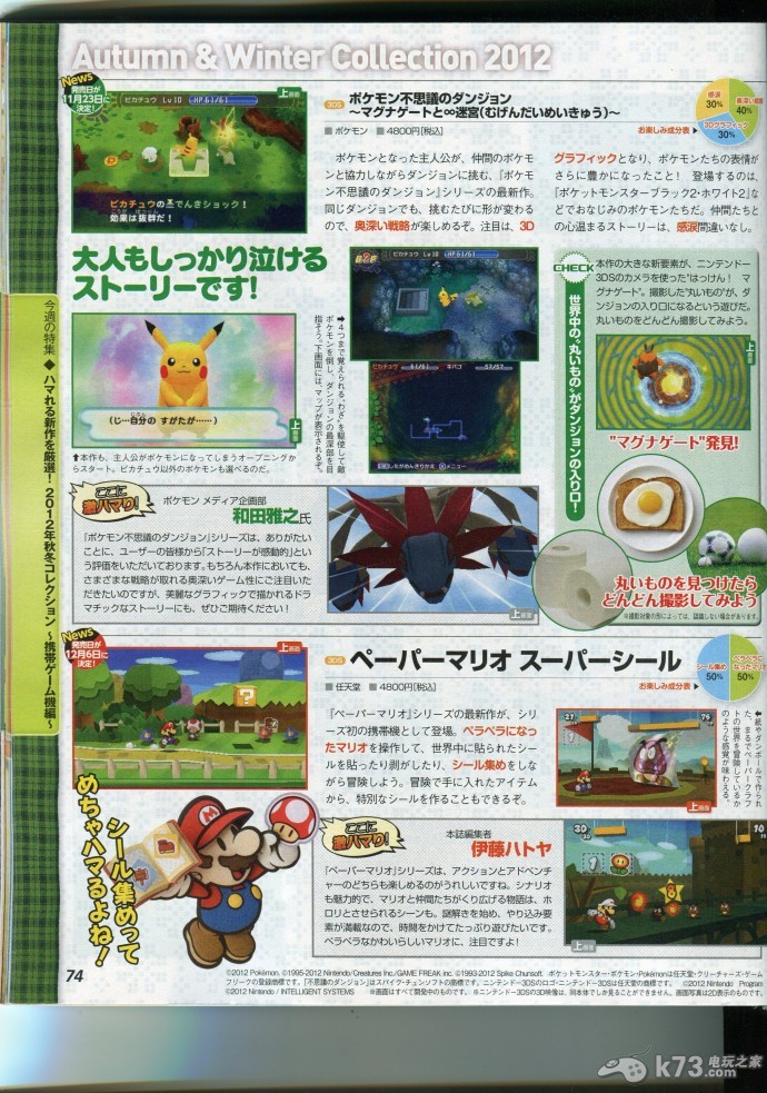 3ds《口袋妖怪不可思议的迷宫 马格纳之门和无限迷宫》和《纸片马里奥 贴纸星》: