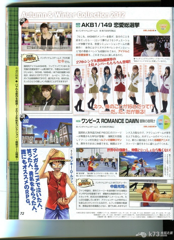PSP/PSV《AKB1/149 恋爱总选举》和PSP《海贼王 冒险的黎明》: