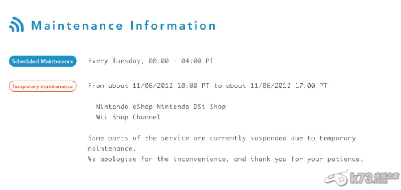 根据网络上最新的消息,11月6日,任天堂将会给每一个任天堂玩家一个惊喜。玩家可以使用任天的eshop进行美国正在举办的全民总统公选,任天堂的Wii Shop频道以及DSi Shop将会进行为时7个小时的维护。