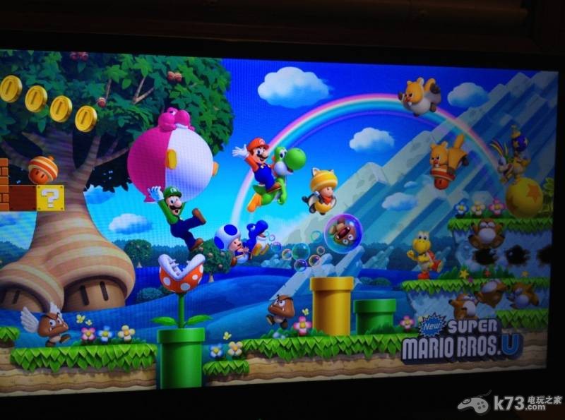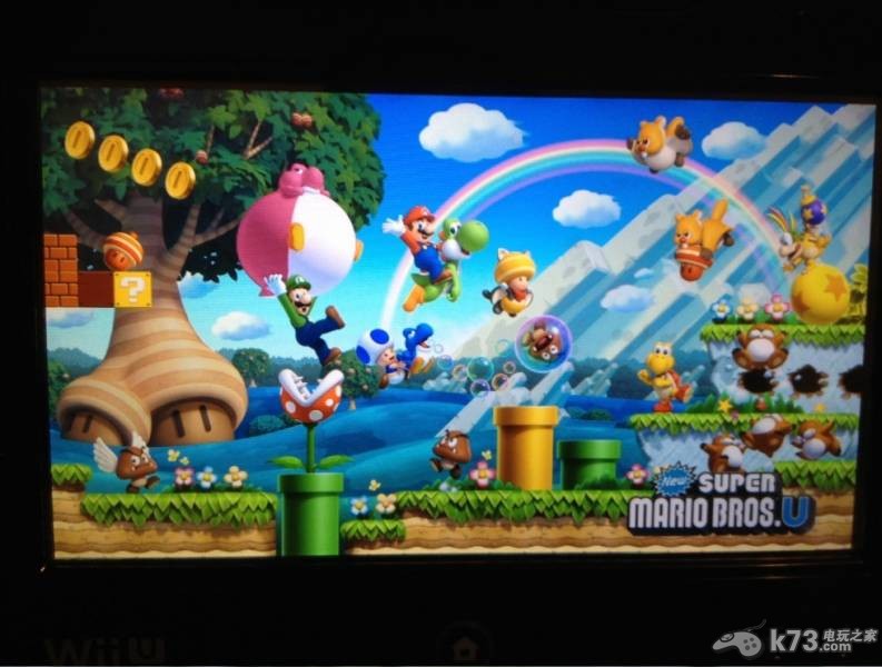WiiU游戏电视画面和GamePad手柄画面对比【新马里奥U】