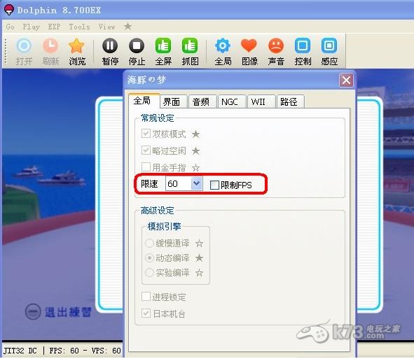1.玩加速器游戏需要您的电脑配置要好,FPS必须要稳定在60不能有拖慢现象,否则体感和游戏不同步会出问题。模拟器【全局】里要按下面这样设置。
