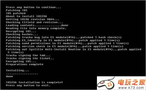 重新将SD卡插回WiiU主机,进入HBC频道,运行IOS236-Installer ,按下A确认即可自动完成。之后返回HBC界面。