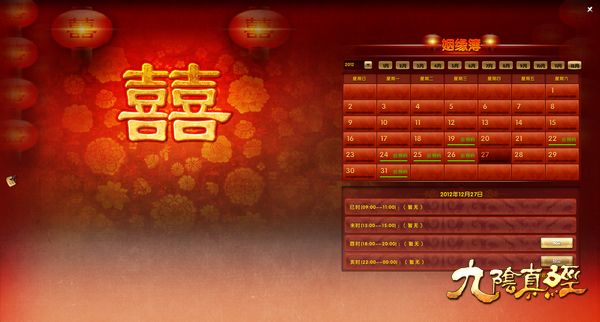 提亲成功后,需要选择举办婚宴日期,及其选择相应婚宴仪仗,一旦选定无法更改。确认婚宴日期及婚宴套餐后,系统向双方赠送“婚戒”,技能道具放置于背包中,使用后可以快速传送到对方位置。系统分别赠送双方一定数量“请帖”道具,可供夫妻玩家任意选择发放给好友,同时也作为入洞房的凭证之一。