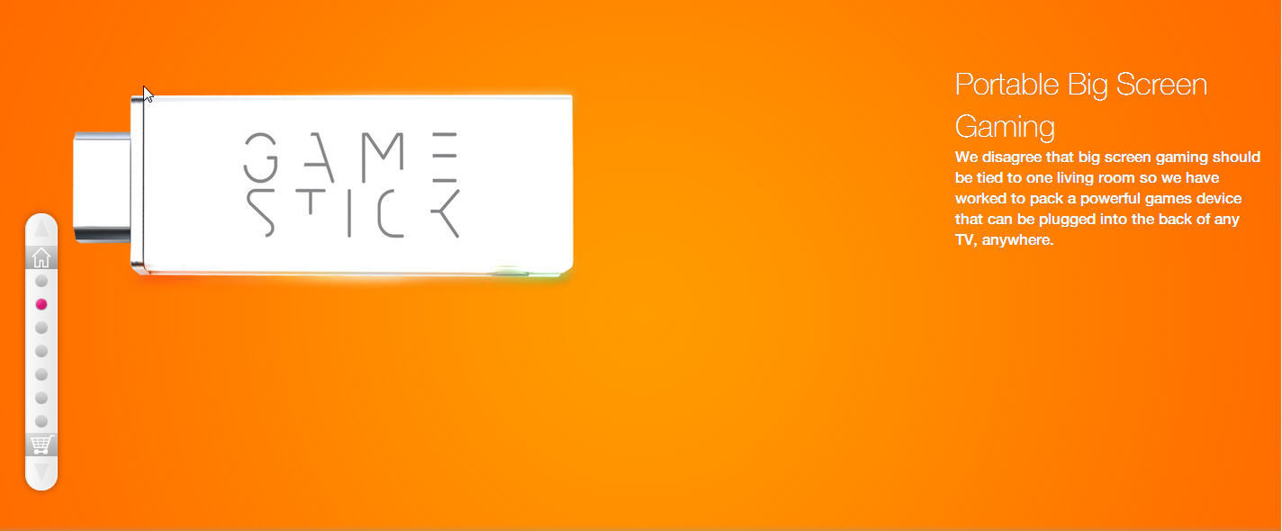 两天前,网站上出现了一个名为GameStick的游戏主机开发专案,开发团队想要作出一个随身携带的家用游戏主机,一个只由手把及长的很像 USB 随身碟的主机 所构成,主机平台採取 安卓 4.1 Jelly Bean 系统来作开发,这就表示,目前在 Google play 上许多的游戏,未来可能可以透过这台主机,实现在大萤幕电视上游玩的梦想。
