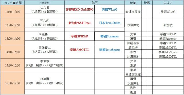 昨日最后一场赛事中,泰国 AMOTEL 以直落 2 击败美国 WLAG,成为 B 组第一名,而韩国 Scammer 则为 B 组第二名。而今日的四强赛事中华义 SPIDER 将与 B 组第二名的韩国 Scammer 争夺冠亚军门票,泰国两支队伍也一同争夺冠亚军资格。