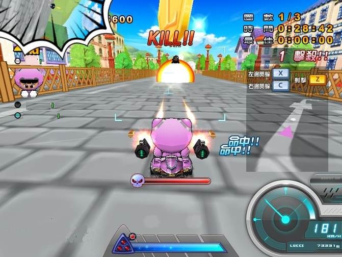 击杀模式为一结合竞速与射击的全新玩法,玩家在奔速行驶之余,可利用自动装备的机关枪攻击其他玩家,凡是获得越多击杀数,就可拥有越多的Lucci奖励。而在击杀模式中,玩家需仔细观察对手的燃料量,并且拟定适切的攻击策略才有获胜机会,若是横衝直撞、乱枪打鸟可是会自乱阵脚!此外,在此模式中,除了讲究击杀时机外,适时的运用闪躲技术避开对手的攻击,更是不可或缺的反应能力!