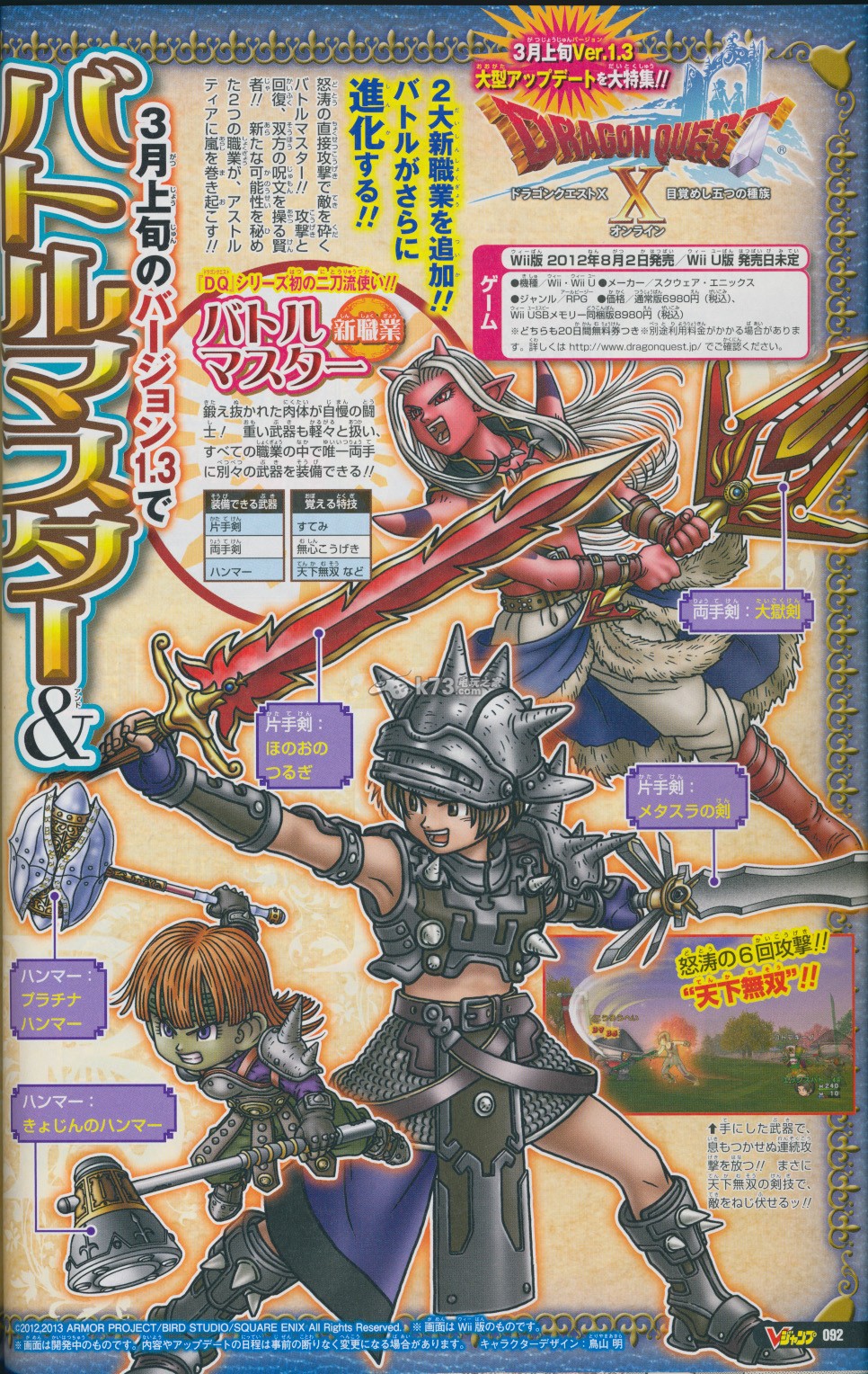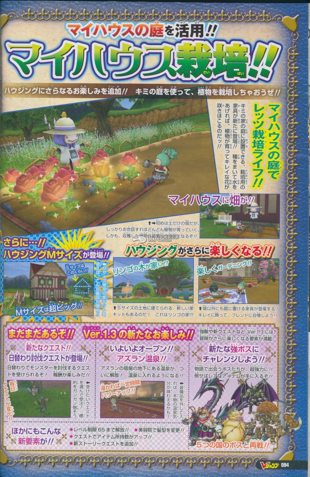 本周的Vjump杂志图上公开了WiiU《勇者斗恶龙10》全新情报,本作的新职业战斗大师、贤者的情报得到了公开。另外,游戏中的栽培系统杂志图也得到了判明。