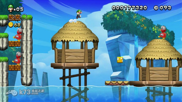 另外,路易的玩法也将会完全不一样,如同《新超级马里奥兄弟2》中一样,路易的跳跃能力更强,其跳跃的高度比马里奥更高,但是却无法进行再跳跃。你需要在《新超级路易U》的关卡中使用路易在100秒以内通过充满障碍物的关卡。