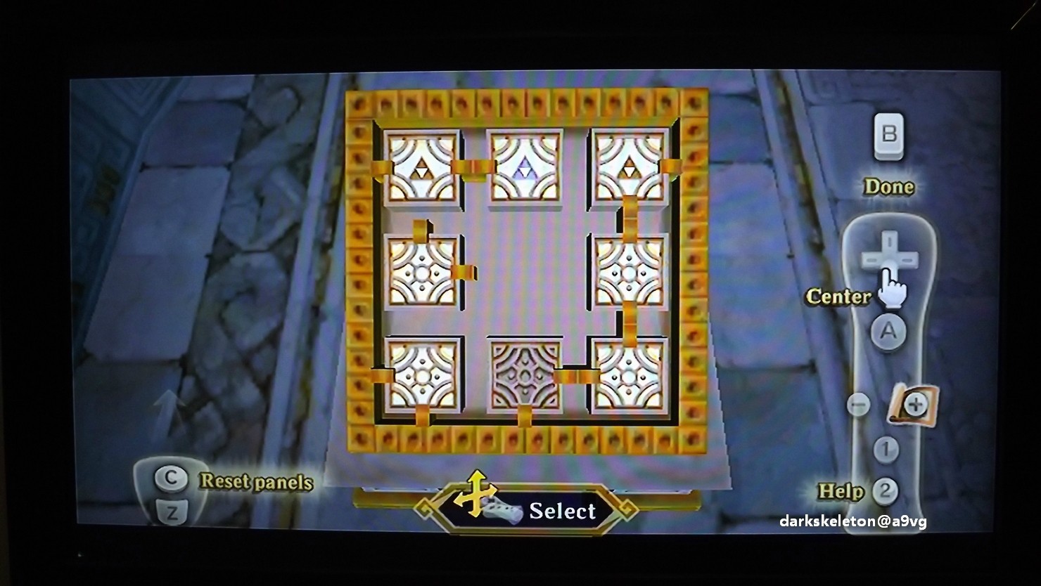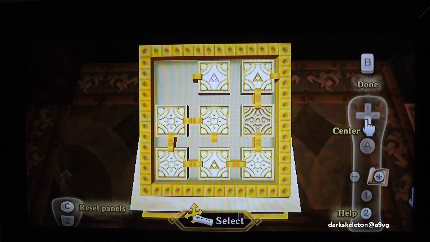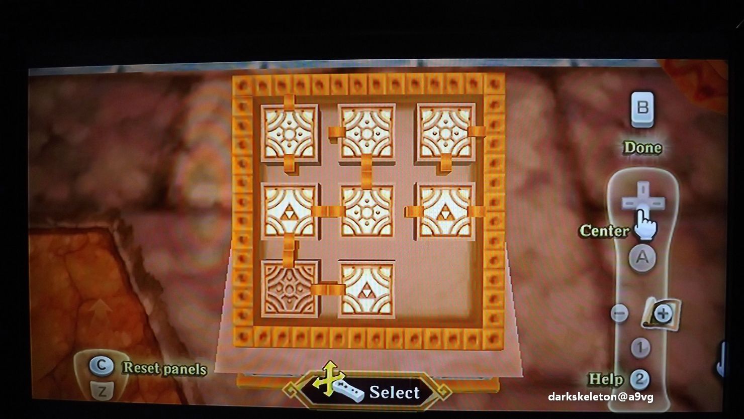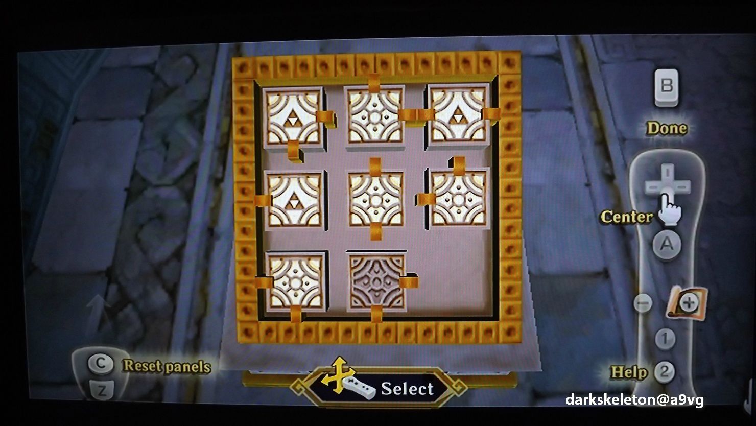 房间2(森林主题):南面先用飞甲虫剪断对面绳索的连接处,然后荡到对面平台。用钩爪从蔓藤过去来到中间的高台,用蔓藤圆柱上的炸弹炸掉旁边的洞里面的三个吐火怪,然后从绳子和木板跳过去来到北面。拉下东边门的开关,以备后用,然后进入房间3。 房间3(时空珠主题):把时空珠放在楼梯旁西南拐角,梯子上去拉下开关。然后把时空珠放在里面的传送带上,东北面拿起传送上来的球。 放到前面看见的移动平台上,然后从东面平行的平台上一边移动一边用吹风筒吹动平台,踩上中间的机关就能打开门,平台到了南面的时候,用弓箭射击对面墙上的机关。 拉下西南面门的开关,以备后用。把时空珠扔进西面的传送条,然后从旁边门进去,把西面墙上所有的机关都打开。然后用北面的操作盘移动房间,形状如下图。穿过房间2进入房间4。