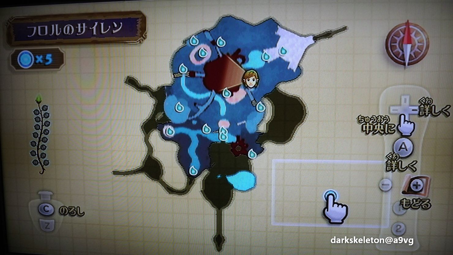 由于“菲罗奈之泪”的光柱比较明显,如果失败了重新开始,打开地图也可以看到拿到过的标记,而且没什么太隐秘的地方,所以这个试炼还是比较容易的。完成后获得水龙之鳞(Water Dragon’s Scale),可以自由的在水里移动。 从中间大树东边的水塘下去,从洞里游到大树内部。从蔓藤爬上平台,穿过绳子吊着的木板(用吹风筒向前下方吹,就能让木板前后移动),来到大树外侧(此处向下能看到下面树根上有女神方块13,调整好位置和方向,跳下去后开启)。一直向上爬,穿过2F后继续向上能到达树顶。 (PS:从2F地图淡绿色区域的西面那侧落下去能拿到宝箱里的300卢比,跳下去之前可以先扒在岩壁上看自己影子所在的位置。在快到树顶前的一个树枝分岔那块,从旁边扒住树檐(站在边缘按A键Drop Down),可以看见下面的平台上的女神方块15。调整好位置然后落下去,过绳索后开启。旁边的树根上还有女神方块14,虽然树根上有钩爪的标记,但是用刚才同样的方法也是可以拿到的。) 树顶上见到丘伊隐士Yerbal,用远程道具攻击他就可以对话。打听得知菲罗奈森林附近还有未知的区域,他在地图上东北边标记了红叉,让你去看看那边的标志。 在观望台旁的地上看到了标志,FI让你记住它的图案。来到地图最南边的石men前,举剑吸收光之力以后,会让你用剑补上缺少的图案。在月牙那里补上一个圆以后,石门就打开了。进去后跳入佛洛里亚湖。
