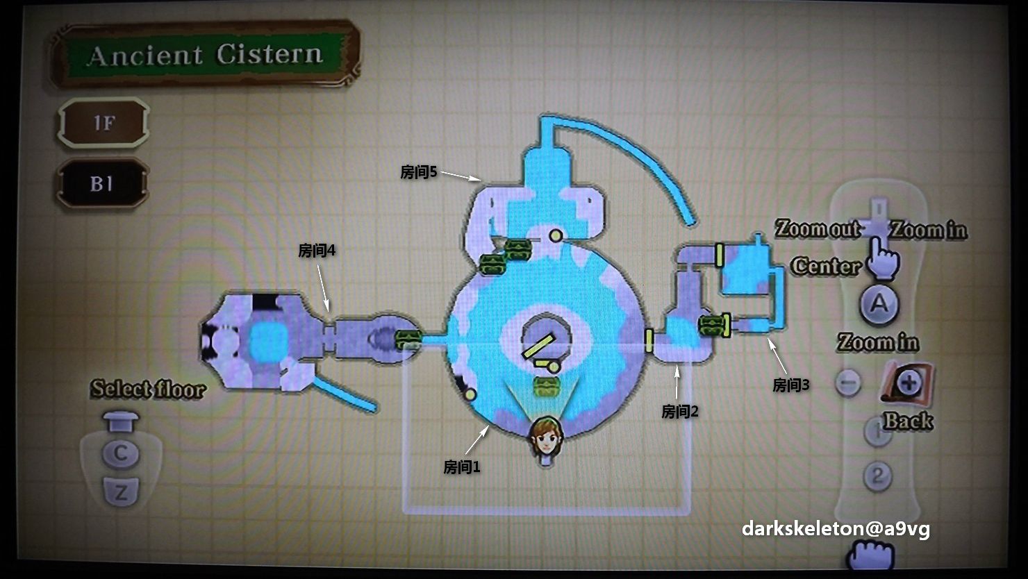 (前两步带*的可省略) *房间1:东面拉下开关进入房间2。 *房间2:来到东北面,发现门上有个四方向机关密码锁。看了石碑的提示后,从南边的水柱上高台绕回房间1。 房间1:中部房间旁边的石碑上记载着,首先是背部,其次是臀部,再次是右手背,最后是左手背。游到水中分别找到各个位置的图案,记下密码为“上、下、左、右”。去房间2输入密码后进房间3。 房间3:爬上东南角高台。从高台上向北面跳下去,踩翻莲叶。进入莲叶下面的洞,绕回房间2的高台上拿到宝箱里的小钥匙。返回房间1. 房间1:中间的房间落到底,干掉敌人,门里宝箱拿到鞭子(Whip)。用鞭子拉动开关,旁边的水管里喷出高压水柱。上去后出中部房间。 东北面用鞭子挂住挂钩荡到北面平台,拿到迷宫地图。西北角用“鲤鱼跳”跳上水管口,鞭子拉翻西边的莲叶,跳过去后再用鞭子拉下开关。瀑布停止后,从水下游到房间4。 房间4:铁men前用鞭子拉下开关。爬上东北面平台,利用挂钩上到西北面平台。拉下开关后上南面平高台,再拉下开关,跳入中间的水池的漩涡进入B1。 B1:飞甲虫剪断蜘蛛丝,蜘蛛掉下来压翻莲叶。水下游过去,铁栅栏前用鞭子抢走怪的小钥匙。进门后,顺着水流进入房间5。 房间5:勾翻东南面蔓藤下的莲叶爬上高台,然后从中间跳下踩翻莲叶。从莲叶下面的洞来到房间西面。打开水管开关后,重新上高台。勾翻水柱上的莲叶,跳过去拉下开关,来到房间1西北角高台。 房间1:西面拉下开关,中间的佛像会陷下去。进入中部房间,下到底部,进入B1中部。 B1:东面能看到恶魔石像的地方,用飞甲虫进入恶魔石像的眼睛里触发机关,石像的嘴会张开。回到东北角,飞甲虫夹上炸弹炸掉北面平台上的石头。 爬上带蔓藤的石柱,先到中部偏北的高台上扳动开关,通过反向的转盘和石柱来到高台的另一边,再扳回开关。 来到西面的尸体堆,爬上绳子到达房间1西南边高台。扳上开关让佛像升起来以后,从刚才爬上来的地方再跳下去。 来到中间拿到祝福神像(Blessed Idol),之后佛像又落下来了。直接进门到顶插钥匙,爬上平台拉起四个开关,佛像再次升起。进入BOSS房间。