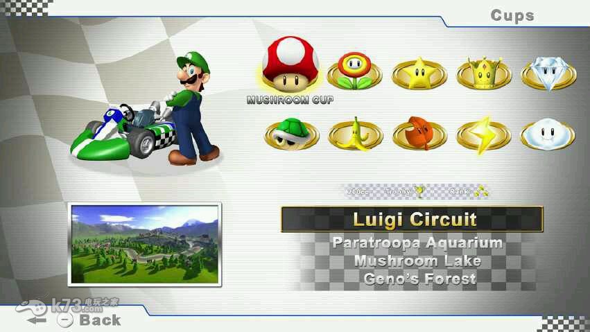 从截图来看,游戏中将会引入10个杯,这听起来有些略奇葩,而左下角的赛道也显示了HD化后的马里奥赛车赛道的风采。不过这张截图的来源和可靠性还有待验证,更多后续马里奥赛车WiiU的情报请留意我们k73的报道。