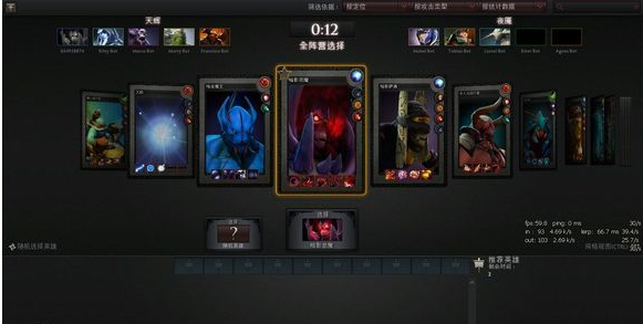 游戏进入LOADING 状态了。这个时候就是稍等一小会,选择英雄的界面处跳出来了,然后嘛开始撸电脑了!!!
