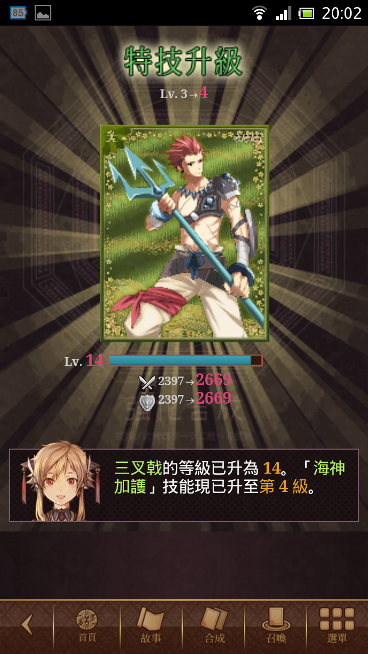 取得素质不错值得养成的式神后,就可以对其进行「强化合成」,在进行合成时,要特别注意使用「相同类型」的式神做为强化素材,才会获得较多的经验值,而如果在召唤或故事调查中获得「勾玉」,则更是强化的优良素材,使用同个类型的勾玉做为素材与1等的式神合成,就会一口气让该式神的等级提升为10级,技能也会提高到3等,能力完全大幅度提升。