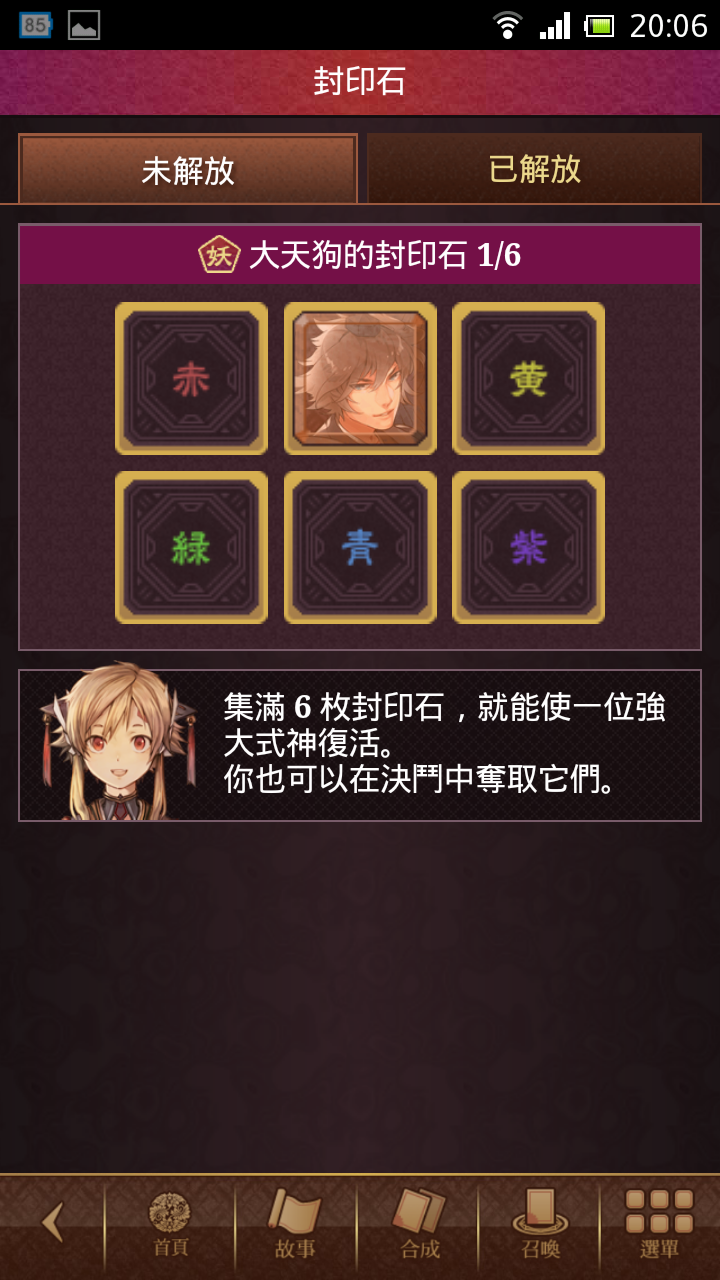 ◆ 收集全一套6个的封印石后,可以获得其中的式神,通常素质都不错