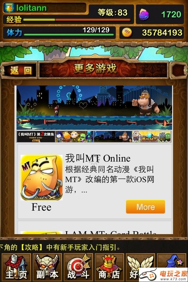 1.如果已经直接注册账号,导致看不到玩家角色的情况发生。请回到登录界面并注销账号后直接点击进入游戏即可。其次在菜单栏里看到了新增的两项:【更多游戏】【返回登录】