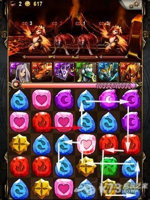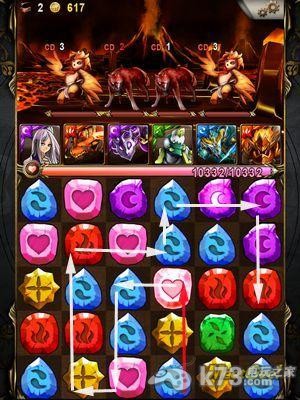 三封之后的玩家一定知道怪物的血量大幅提升,全体攻击可有可无,冲COMBO 的高伤害一只一只打才安全,图九、图十的水属珠子较多,而且还有靠近的L 型排列,随随便便就能组出五颗的全体攻击,但这里注重的是COMBO 数,尽可能避开五连珠。