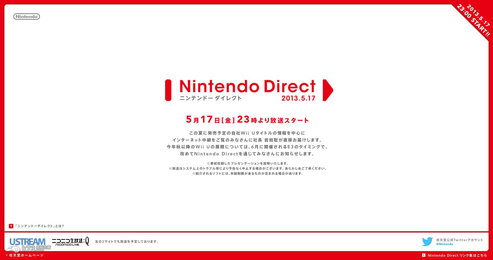 来自任天堂官方今天的最新消息,其将会于5月17日晚间举办一场全新的游戏直播会,此次的直播会以游戏为主,主要介绍WiiU游戏、次要为3ds游戏。