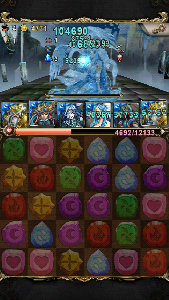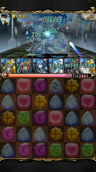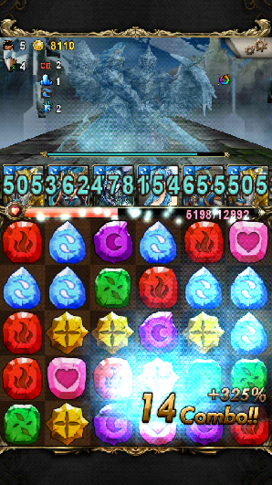 然后冰封的第3回合 王的大转珠帮我转到刚好剩3排杂珠 ,每种刚好3颗 14combo 秒杀了,鱼仙又不用出手了 能出手大概爆个百多万。