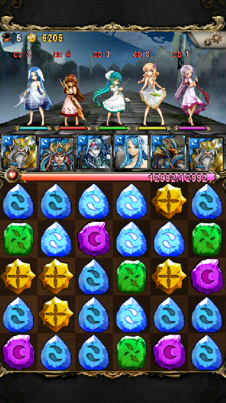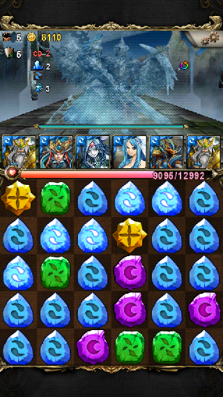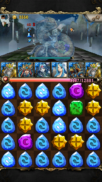 王的话一见面就用冰封起 ,回满血 (每次用他属性的珠打他会自扣30% 3回合内就是90%),用他自己转给我的水珠打他 (所以不用龙王技能),(这裡给还没打/还不知道的版友说一下 ,王不是只会转光/暗珠 ,而是根据他自己的属性来转珠, 因為他本身是光暗换来换去才会只转光暗属珠 ,如果用冰封的话 你会发现超爽的 ,心和火珠他都会转成水珠),好吧, 正式开始 一路下来竟然轻鬆得很 二阶三阶史莱姆做不成威胁 ,有盾蜥蝪身边的怪也能秒掉,很快就到了3魔女(第8关)。