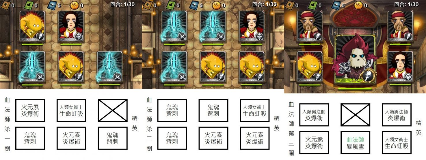 怪物统计:人类女术士(生命虹吸)x4、人类男法师(炎爆术)x2、火元素(炎爆术)x3、鬼魂(背刺)x4