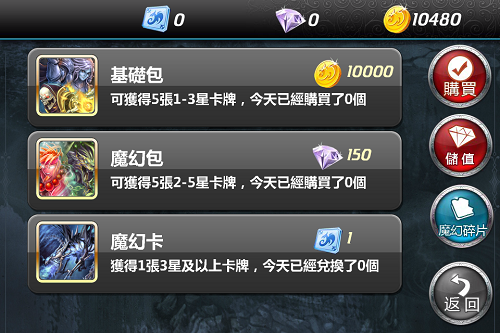 -点选下方"魔幻卡"再点选"购买"可以得3-5星的卡片一张