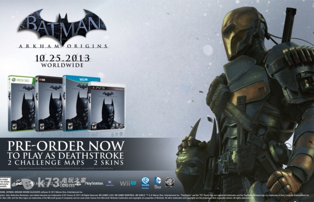 WB Games蒙特利尔工作室于之前曾表示首批购买《蝙蝠侠阿甘起源》游戏的玩家可以获得一个游戏的dlc特典内容,这一dlc的内容自然也包含WiiU平台了。不过根据官方的最新消息,其中的“Deathstroke(丧钟)”将不包含在WiiU版中。