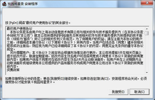 步骤一:双击安装程序,此时弹出的是最终用户软件许可协议,如果您同意安装,请阅读完本许可协议,请点击【我接受】。