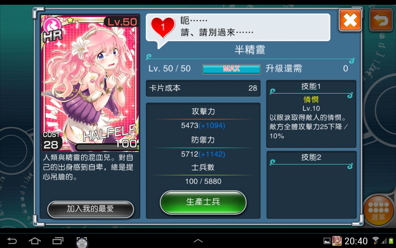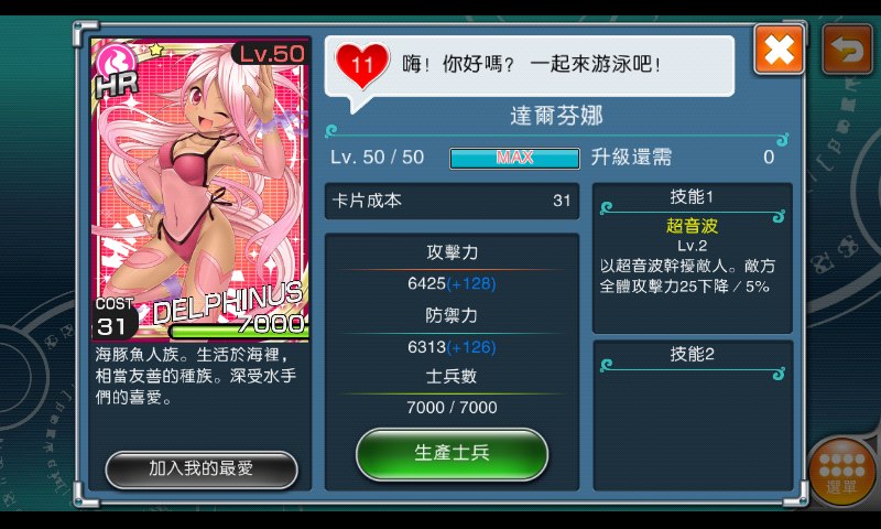 我目前的牌组是1主力(未知)+2降攻(半精灵+达尔芬娜)、2补血(天使x2)。基本上没抽到倍卡就只能当摸神,这大概大家都一样。(别跟我提莉莉姆,就跟你说不要讲那个不切实际的梦想。)我的达尔芬娜吃了1000防,两隻天使各吃500防,如果我再抽到一张达尔芬娜,我也会餵防。天使餵比较少纯粹是因為奖章不太够而已,改天如果多打几张魔女,就有可能再餵。