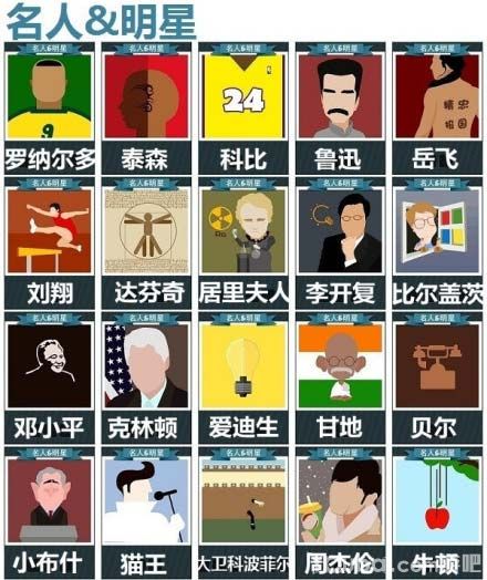 对于在游戏《疯狂猜图》中我想名人明星是玩家们都最熟悉的一块了,毕竟在我们的生活之中还是会遇到很多,但是还是有一些历史人物或者是国外名人我们知道并不是很多,这里的全名人明星答案希望对玩家们会起到一定的帮助!
