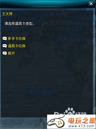 与王天哲对话,选择道具卡兑换,再新页面选择新手卡兑换,填写第4步所得的卡号。