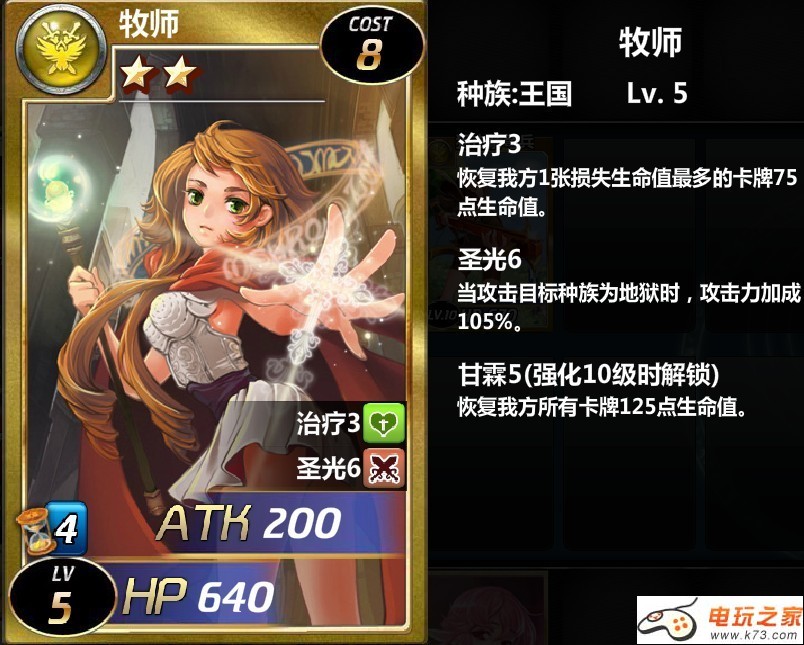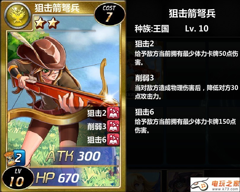 这是个纯王国的阵容,也是万金油阵容,符文扣攻击,箭弩兵扣攻击,2个奶妈。所以要透过这些卡牌把对面的英雄打死需要高爆发的阵容,最好选择带有暗杀技能的蛮荒族卡片,绝对不能跟这个阵容拖时间,因为拖到后面发现攻击就只剩下100多,相当的难受。