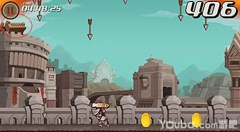 金币的获取仍然在骑士后方,获得金币后,连续点击屏幕推回巨大球体即可。