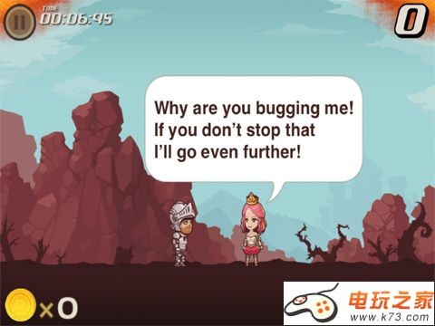 一开始骑士正在和公主聊天,突然火龙把公主抓走了,骑士开始了拯救公主的冒险旅程,这一关就是拿来看剧情的,没什么特别的深意。