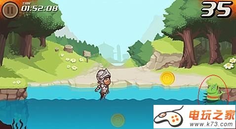 注:河对岸上还有只动物,不要碰到他,离它远一点蓄最大力量即可躲开。