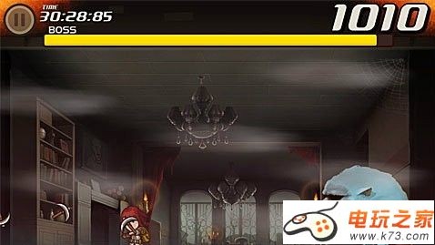 点击屏幕控制方向,BOSS的攻击规律:先发动冰块攻击,等冰块落下后,BOSS会发动火焰攻击,需注意,等冰块落下后,控制主角躲在冰块里,不要出冰块范围。