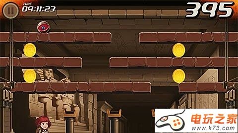 掌握好时机利用跳跃来躲避3个机关。