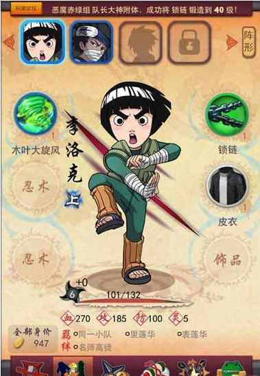 阵容:玩家招募到忍者后可选择出战的忍者,上阵忍者最多可选8名。