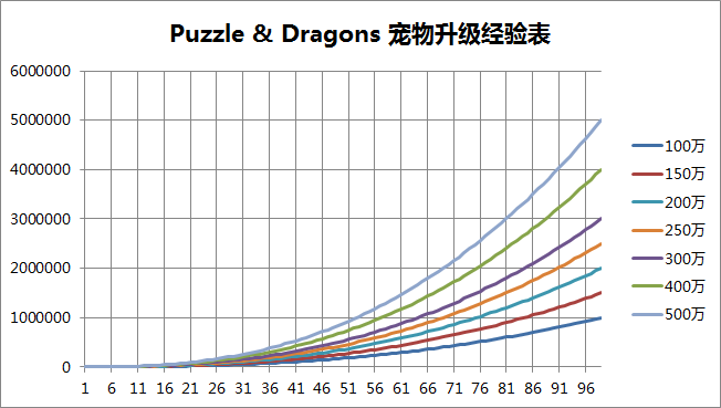- 目前已知的宠物升级经验共有七张表,其满级经验分别为100万,150万,200万,250万,300万,400万和500万。