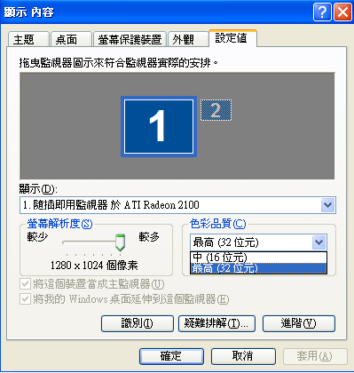 更新卡住的可能性很多,从档案下载、安装不完整…etc,从最基础的开始测试,检查一下萤幕解析度的色彩是否大於24,请在萤幕桌面点选滑鼠右键,选取内容>设定值,开啟萤幕解析度,将色彩选项改為32位元(全彩)即可。